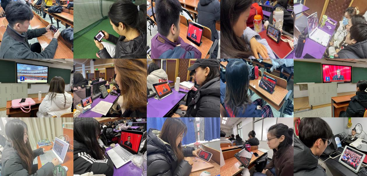 分党委第一时间组织全体师生通过网络、电视等线上线下相结合的方式收听收看大会直播,引导师生关注两会动态,共同研读、交流感想。