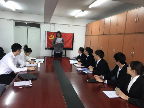 2017级党支部在教研楼210会议室召开了党员发展大会,此次会议由党支部书记高静怡老师主持,三名正式党员以及五名发展对象参加了本次大会。